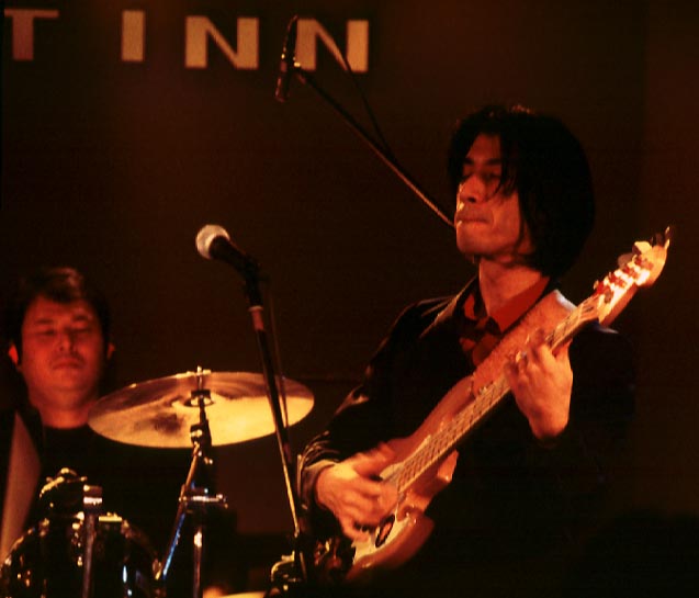 Eyes 〜 SQUIDSでの力強い音色…これには思わず聴き惚れてしまいましたね。軽〜く流す音が好きな人には「もうおなかいっぱいだ。」と言われる可能性がありますが、少々骨のある音が好きな人には非常に魅力的だと思います。ソロのフレーズもこなれてましたね〜。しかもそれが、決して無理してひねり出したものではなく、まさに彼の音楽的センスによって自然に流れるように響いてくるのです。これには脱帽せざるをえませんでしたよ。