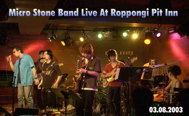 | 唐突ではあるが、ライブで見たMicro Stoneの進化は予想以上だった。 また、更にその音楽には「深化」も加わっていると今回のライブを見て確信する。 この日のライブは日曜日の夜というライブの出足が心配される時間帯ではあったが、熱心なファンが集まった。 なんといってもMicro Stoneのライブは「楽しい」の一語につきる。 それもそのはず、最新作「Groovres Move On」を中心に、1曲目"Axle"から最後の曲までアクセル全開。 この曲は夏らしい爽快で、ややリッピントンズや西海岸Fusionを思い起こすナンバー。 斉藤力のアルトSaxが良い鳴りっぷりをしている。昨今のFusionアルトSaxというとまず最初にサンボーン系を思い浮かべるのだが、斉藤のアルトはまた一味違う。音に芯があって軽快で聞いていて気持ちよいSaxだ。 また、曲によってはSaxにエフェクトをかけたソロがなかなか面白く、エディ・ハリスや一時期やってたマイケル・ブレッカーを思い出すが、斉藤の場合はSaxの音色を損ねることなく、なかなか味があって良いなと思った。 次にメドレーで演奏された"Sweet Heaven"、"BLONDE"は、フロントの2人(イシハラケンジ、岸川恭子)のVoiceがばんばん演奏を盛り上げる。 特に岸川恭子のボーカルはパンチを持たせるとまるでアレサ・フランクリンのようにパワフルに歌い、また繊細な曲ではロバータ・フラックのように伸びのある声で歌う。 歌うといってもVoiceということでスキャットなのだが、その表現力は凄い。特にスローな"Sweet Heaven"なんてそのVoiceで独特の世界を作っている。 イシハラケンジもソウルフルなVoiceと、まるでブラザー!といったステージアクトで魅せてくれる。 それと"Blondeでの岸川恭子、イシハラ ケンジとのVoiceの掛け合いが見事だ。 また"Sweet Heaven"では飯塚 由加もなかなかのピアノ&キーボードさばきを聞かせてくれる。 短いながらシンセ・ソロと、後半は鋭いピアノ・ソロを聞かせてくれる。 ピアノの方は、ソロにバッキングにまるでハービー・ハンコックを彷彿し、なかなかジャジーである。 "Heart Of Gold"は新作「Groovres Move On」のなかで実は筆者の一番お気に入りの曲。 この曲は前半と後半で様相がガラっと変わる2重人格的なジキル&ハイドな曲だ。 この曲からギターの大田光宏が登場。 その大田のギターが絶品なギターワークを披露する。 斉藤のSaxがメロウなトーンによるテーマ・・・そこのバッキングが絶妙で、ラリー・カールトンの歌伴のような上手さを感じる。 それから大田のギター・ソロになるが、メロウでなかなか泣きのギターを聞かせてくれた。 そしてリズムが変わる"Heart Of Gold"の後半・・・ここは何度聞いてもゾクゾクする。 町田 浩明のドラムがズドンと重いビートと、シラキヤスユキの重いリズムとが刻まれはじめる。 すると大田のギターが引きつったようなトーンでドライブする。 このギターがさっきのメロウなフレーズとは打って変わって、攻撃的なフレーズが駆け巡る。 それにしても大田のギターは凄い。バッキングの名人技には舌を巻いたが、これだけでも相当だと思うのに、ソロの方も抜群に良いのだ。 通常はどちらか一方が多いのだが、どちらも上手いギタリストというと、リー・リトナー、スティーブ・ルカサー、ラリー・カールトンというあたりを思い出す。 でもそれはイメージだけで大田はどれとも違う、また違った個性の持ち主だ。 うーん、こんなギタリストが隠れていたなんて・・・・今日一番の驚きである。 続けて"Spiral"がメドレーで演奏される。今度は打って変わって軽快なナンバー。 この曲では安井 希久子のティンパニー、カウベルでのバッキングがカッコ良くて、まるでシーラEをほうふつする。(さすがにシンバルを足で蹴ったりしないけど・・。) それと1stステージ最後の"Sonic Sonik"もイケイケで楽しく前半を締めくくった。 そして2ndステージ。 ここで意表をついて、安井のパーカッション・ソロから始まった。 このソロでの安井は、なかなか味のあるパーカッションを聞かせる。それはよくある次第にクレッシェンドして盛り上がるだけというソロとは違い、音と音の合間をも使う、それは”間”を表現してるようななかなか個性のあるパーカッション・ソロだ。 その後はもう2ndは大ノリ大会。Micro Stone Band名義の「HEY!!」や、最新作「Groovres Move On」のナンバーを中心にすごく楽しく、ノリの良いステージに突入する。 ここで遅らばせながら、本来のMicro Stoneのコア(核)であるドラムの町田浩明、ベースのシラキ ヤスユキに注目した。 なぜ遅れたかと言うと、この2人中心のバンドのはずなのに、ソロを大きく取るでもなく、目立つというよりかは地味(?)・・に思えて不思議なバンドだなぁと最初は思ったからだ。 しかし、よくよく聞いてみると、各メンバーに色々とソロを取らせながら、実はすごいグルービーなリズムを作っているのがまぎれもないこの2人に気づいたのである。 町田のドラムはパワフルであり、またズッシリと重量感溢れるドラ