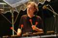 ステージ中央にブレッカーだけを残して始まったのは新型EWIを駆使してのソロだった。90年代の再結成ブレッカー・ブラザーズのライブで「Song For Barry」のイントロ部に演奏されていたものの延長線上にあるようなサウンドで、アフリカや中近東をイメージさせるヴォイスのサンプリング音やサウンド・エフェクトをリアルタイムでEWIでコントロールしながら、その上を太いシンセ音で駆け巡ると言った構成だった。そしてそのまま叙情的なメロディーを奏でる「In A Sentimental Mood」へと流れていく。 マイケルがこれだけ本格的にEWIをライブで演奏するのは、かなり久しぶりだと思うのだが、以前でもEWIを究極まで極めているという印象だったのに、より一層表現力が上がっているのには感心してしまった。 そして最後は86年ライブ盤同様にポップでノリのいいナンバー「Trains」で、スターンが存分に弾きまくってステージを締めくくった。ライブの最後を飾るのにもってこいの盛り上がる曲だ。 雨の中、気がついて見れば1曲目から最後までほとんどの観客はずっと立ったままで、当然アンコールなしでは収まるはずがない。 拍手が鳴りやまない中始まったアンコールは最近閉店された六本木ピットインでライブレコーディングされたStepsのデビューアルバム「Smokin' In The Pit」の1曲目「Tee Bag」だった。この日は86年ライブ盤からの曲を中心に第2期以降の選曲ばかりだったので、このメンバーでアコースティック時代からの曲が聞けるとは嬉しい驚きだった。 マイク・スターン、ダリル・ジョーンズはこの曲は初めての演奏だった様子で、最初のテーマは2人寄り添って譜面にかじりついていてぎこちなかったのはご愛嬌だが、中盤以降は、曲を飲み込んで乗ってきたようで、スターンは自分でソロをとるとステージ脇に引いていたブレッカーを手招きして呼び寄せ掛け合いをはじめた。 最初はテナーで応じていたブレッカーだが、途中でEWIに持ち替え、スターンもそれに呼応するように目一杯ディストーションをかけてギンギンに弾きまくっていた。それをバックでガッドが煽りまくる展開となりそのままエンディングに雪崩れ込んだ。 始まる前は売れっ子ミュージシャン達のこの日だけのための再結成とのことで、リハーサル不足を懸念していたが、個々のミュージシャンのレベルの高さを見せ付けてくれ、86年当時よりも完成度も上がっているような圧倒的なライブだった。 大規模なジャズフェスのトリを飾るにふさわしい企画、演奏だったと言えるだろう。(橋 雅人) |