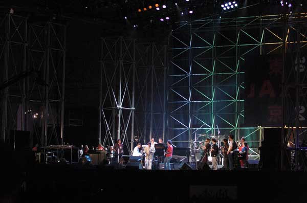 東京JAZZ恒例ともなったエンディングでのスーパーユニット。 ハービーをリーダーとして出演バンドの中からのセレクトメンバーが、大人数でセッションを繰り広げる。まったく展開が予想できないセッションというのは、このフェスティバルならではの楽しみだろう。 このセッションでも怪人(?)ギタリスト、リオーネル・ルエケが大きくフィーチャーされていた。