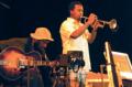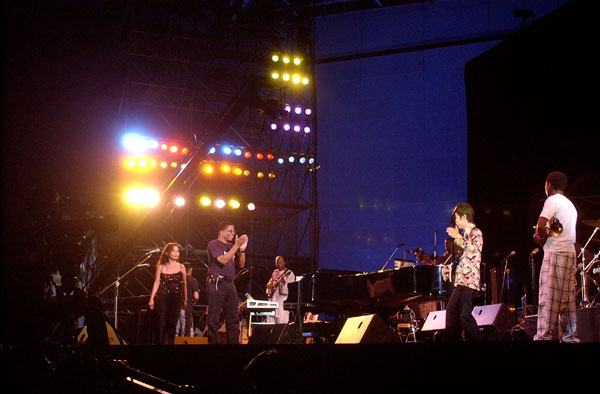 一日目、夜の部最初はチャリートが登場。 そのコスチュ−ムもさることながら、とてもカラフルなステージになりました。 Jazzのスタンダードをラテン風に演奏するJazzで、ディジー・ガレスピーがやっていたラテンJazzのな雰囲気を思い起こします。 チャリートは見た目は、ちょっと華奢ですが、声量は凄いです。 そして「尊敬するイヴァン・リンスの曲を歌います」とアナウンス・・・すると昼の部に出演したイヴァン・リンスが登場してチャリートとのデュエット。 これは思わぬハプニングですね。チャリートの「Dream Come True」ともらしたのはわかる気がします。 またボーカルを支えるバックも素晴らしく、特にトランペット原のハイノートには唸ってしまいました。(TKO) |