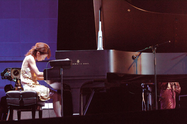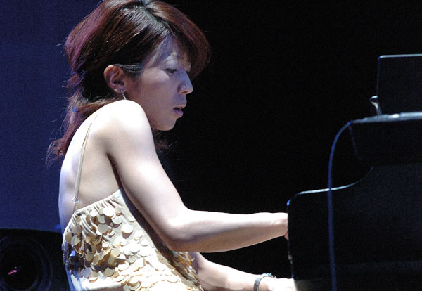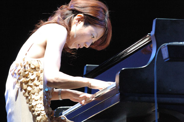 繊細でいて大胆、弱弱しく見えてパワフル、聴きやすくいながら挑戦的。 山中千尋のピアノは、先入観とは正反対の、良い意味での期待を裏切る凄いピアノを聞かせてくれます。 パワーのあるバックのベース、ドラムを向こうに回して、広い会場なのにピアノの音はよく届いてました。 ベース・ソロからメドレーで、八木節をアレンジして演奏したとのことですが、どこが八木節だったのか思うほどJazzにアレンジされ、激しく、そして爽やかな演奏でした。 毎年東京Jazzには華やかな女性Jazzミュージシャンが登場して楽しませてくれますが、今年はまさに山中 千尋に注目が集まりました。 女流Jazzピアニストには繊細なビル・エバンス系が多いのですが、山中はガンガンにピアノをかき鳴らすタイプ。 そこがたまらなくジャジーで、繊細ピアノも悪くないけど、こういうイベントのJazzはこうでなきゃねと4ビートのスイング感に酔いしれました。(TKO) |