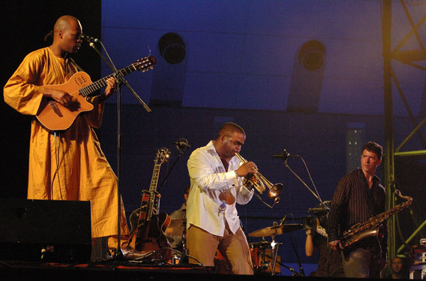 テレンス・ブランチャードは、4ビートのみならず、エレクトリックを交えたバンドで登場。 流石にトランペットの鳴りは素晴らしく、現在Jazzの実力派トランペッターの凄みを聴かせてくれました。 また、昨年初登場した謎のギタリストのリオーネル・エルケ(g)は、このテレンスとレコーディングもあり、今回もコリコリカリカリとギターを擦る謎の奏法を聞かせてくれました。 欲を言えば、もっとテレンスのはばりばりとトランペット・ソロを聞かせて欲しかった・・・と思うほど、テレンスのトランペットの素晴らしさを再発見しました。(TKO) |