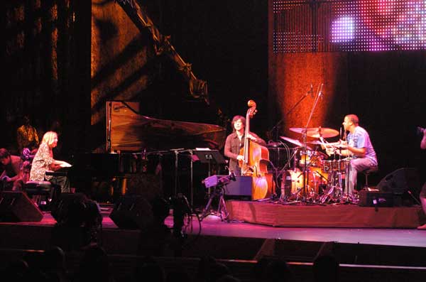 1曲目の新感覚のファンク曲「XYZ」から全開の演奏。 この曲は聴いているうちになぜかエマーソン・レイク&パーマーを連想してしまうような演奏だった。 レギュラー・トリオでのタイトなプレイは相変わらずだが、2年ぶりに生で見た上原の表現力は格段に幅がでてきたように感じた。 高速でパワフルなピアノはより磨きがかかっている上に、ゆったりとしたテンポのフレーズでも存在感は抜群だった。 この日の昼、夜を通じてのハイライトはこの上原ひろみのステージだったと言ってもよいだろう。 ベースのトニー・グレイのプレイもなかなかのものだった。(橋 雅人) |